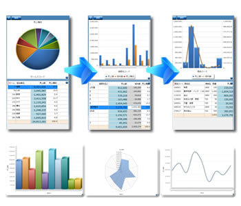 見積・受注・売上から請求・入金と業務の流れをそのままに運用でき、データの管理集計を行います。下図の概念図でシステム内容をご確認できます。