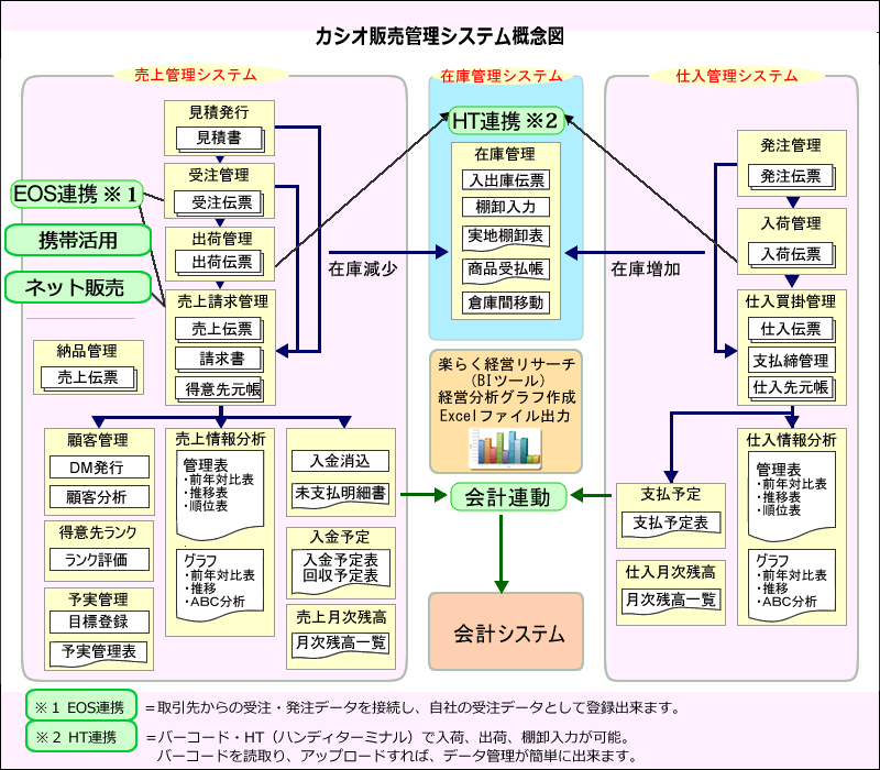カシオの簡単!販売管理システムは、卸売業、製造業、サービス業向けのシステムです。