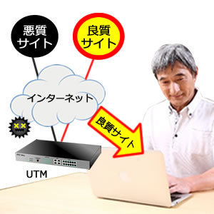 仕事中に誤って危険なサイトを開いてしまった場合、急いでサイトを閉じることが出来ればいいのですが、パソコンがウィルスに感染した場合は、保存してある顧客情報等の様々な情報が漏えいする可能性があります。UTMは危険なサイトへのアクセス防止機能があるので、間違って危険なサイトをクリックした場合でも、訪問防止されるので、安心してインターネットを使うことが出来ます。