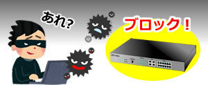ネットワーク内に侵入する悪質・不正なアクセスをブロックします。ネットワークに侵入する不正なトラフィックを防御するために、自動的にトラフィックのIPアドレスを検知し、攻撃者を特定することが出来るので、同じ被害に遭う事を防止できて安心です。