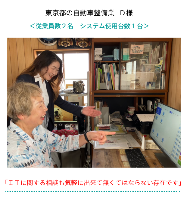 担当者が定期的に訪問し、システムの点検も兼ねて問題なく使えているか等、気にかけてくれます。IT導入補助金のサポートも優しく対応してくれるので安心です。