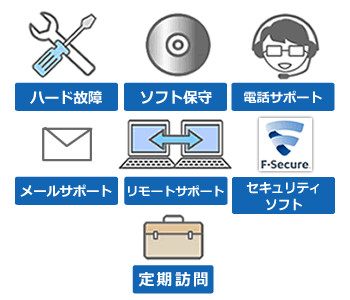簡単!販売管理システムには6年間の安心サポートが付いています。パソコン故障時などのハード保証、ソフト保証、電話サポート、メールサポート、リモートサポート、法改正によるプログラム変更、ウィルス感染防止ソフト、オンラインバックアップ等を一貫してサポートしています!
