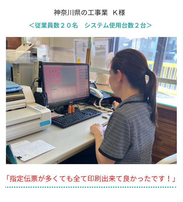 得意先指定の請求書、連帳用紙の請求明細書、封筒印刷が同時に2台のパソコンで快適に使うことが出来ています。